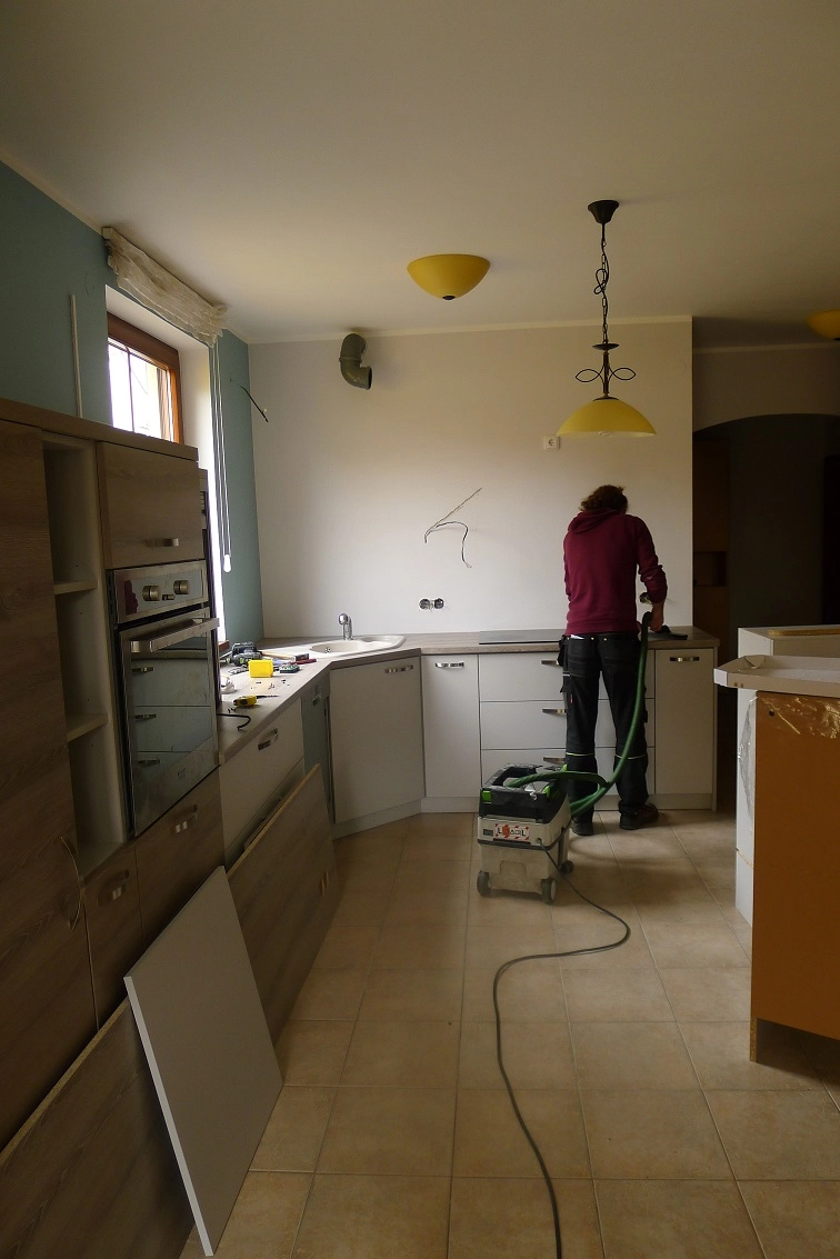 Bohužel po dlouhém zvážení všech možností jsem nakonec s majitelkou přistoupila na nejvhodnější řešení - demontáž stávají linky, zakázkovou výrobu nové linky, ve které ponecháme stávající spotřebiče. Kombinace lamina dub přírodní a lamina v RAL šedé barvě se opravdu povedla. Teplé a studené barvy ukazují správný směr. Celá sestava působí vzdušně a elegantně. Propojení ergonomie, praktičnosti a estetiky se nedá obejít. Jedno bez druhého nefunguje.
